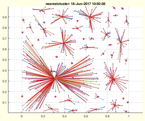 nearestcluster(RL,lim)- returns a reduced list of points and a cluster list |