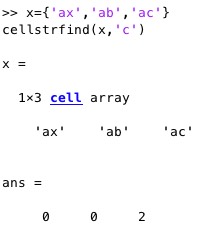 cellstrfind(cellstr,str)- returns the position of a string in a cell list of string |