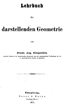 Klingenfeld, F.A. (1854): Lehrbuch der Darstellenden Geometrie für polytechnische Schulen, Bauer & Raspe, Nürnberg