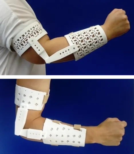 Anthropometrische Unterschiede werden bei kommerziellen Ellenbogenorthesen über Standardgrößen wie S, M und L angenähert. Trägt ein Patient das Hilfsmittel über einen längeren Zeitraum, so werden für ihn handwerklich individuelle Armschalen hergestellt. Im Rahmen dieser Arbeit wurden unter Zuhilfenahme der SG-Library Matlab-Routinen geschrieben, die auf Grundlage von einfachen Körperabmessungen oder eines 3D-Scans individuelle Schalen inklusive Polsterung als STL bzw. SVG Datei erstellen. Auf deren Grundlage kann anschließend mittels additiver Fertigung und Lasercutten von Filz eine individualisierte Orthese hergestellt werden.