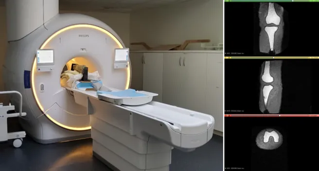 Vergangene Woche wurden Messungen am Klinikum rechts der Isar an der Professur für experimentelle Magnetresonanzthomographie (Prof. Dr. Dimitrios Karampinos) vorgenommen. Bei den Messungen wurde ein Phantommodell untersucht. Das Phantom stellt die bildgebenden Eigenschaften eines menschlichen Beines nach. Im Rahmen der Messungen wurde eine geeignete Messsequenz und die zu erwartende Messgenauigkeit für einen geplanten Probandenversuch ermittelt. Im folgenden Probandenversuch wird die Kinematik des menschlichen Kniegelenks unter Last untersucht und darauf basierend ein individualisiertes räumliches Orthesengelenk entwickelt werden.